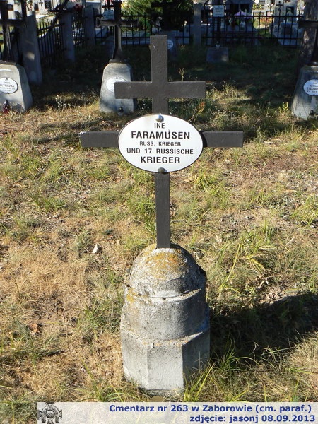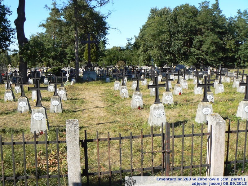 Cmentarz nr 263 to do艣膰 spora kwatera na cmentarzu parafialny znajduj膮cym si臋 kilkasetmetr贸w od centrum Zaborowa przy drodze na Jadowniki Mokre. Na cmentarzu warto zwr贸ci膰 uwag臋, na jedyny w swoim rodzaju rze藕biony drewniany krzy偶 z daszkiem - obecny to chyba rekonstrukcja, ale zgodna z pierwowzorem, co wida膰 na zdj臋ciach archiwalnych.