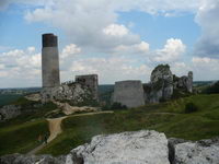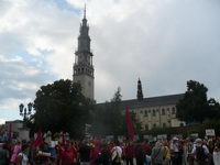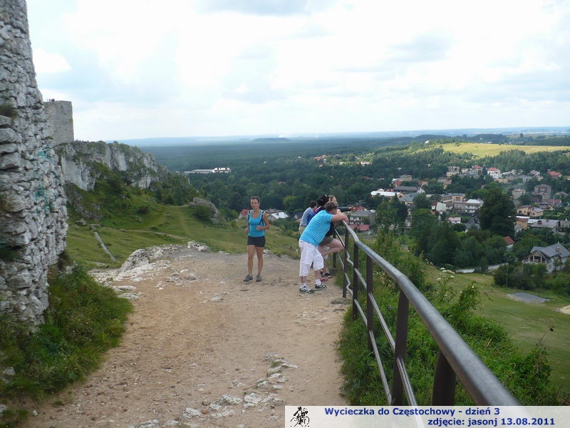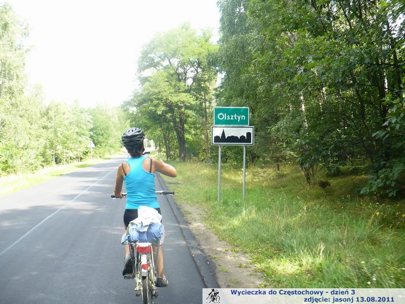 Pod ruinami zamku Olsztyn zrobiliśmy dłuższy postój połączony ze zwiedzaniem. Żeby wejść na plac trzeba kupić niestety bilet, ale warto to zrobić - widoki, ze wzgórza na którym położony jest zamek są przepiękne. W oddali widać Częstochowę i Jasną Górę - ten fakt napełnił nas sporym optymizmem. Wręcz odwrotnie działała na nas pogoda, która zaczęła się psuć. Po sesji fotograficznej w ruinach, ruszyliśmy, więc szybko dalej przez wioskę Kusięta dojechaliśmy na przedmieścia Częstochowy. Jednak od znaku Częstochowa do Jasnej Góry trzeba pokonać jeszcze dobre 10 km, zanim dojechaliśmy na Aleję Najświętszej Marii Panny (około godziny 14:00) na niebie zaczęły pojawiać się błyskawice - zaczęliśmy więc szybko szukać noclegu. Były z tym pewne problemy, więc po paru minutach zdołał nas dopaść deszcz. Ostatecznie znaleźliśmy pokój w odległym o 2 km od Jasnej Góry motelu na ulicy Krótkiej.