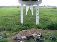 Start wycieczki by艂 zaplanowany na 15:00, ca艂y dzie艅 by艂o s艂onecznie i bardzo ciep艂o, ale akurat oko艂o 15 zacz臋艂o si臋 chmurzy膰, jednak burzy jeszcze nie by艂o, wi臋c postanowili艣my jednak jecha膰. Plusem zachmurzenia, by艂o lekkie zmniejszenie si臋 temperatury, wi臋c jecha艂o si臋 ca艂kiem przyjemnie. Przejechali艣my przez wie艣 i wjechali艣my na wa艂, kt贸rym zamierza艂em dojecha膰 a偶 do mostu na Wi艣le w Nowym Brzesku. Droga po wale do艣膰 ci臋偶ka, miejscami utwardzona du偶ymi kamieniami po kt贸rych mi osobi艣cie jecha艂o si臋 do艣膰 ci臋偶ko, tempo jazdy by艂o wi臋c nie wysokie. Mniej wi臋cej w po艂owie drogi nagle zacz臋艂o grzmie膰, zastanawia艂em si臋 nawet czy nie zawr贸ci膰, ale postanowi艂em jecha膰 do Nowego Brzeska i tam przeczeka膰 burz臋. Nie doceni艂em jednak odleg艂o艣ci i w rezultacie burza dopad艂a nas w momencie zbli偶ania si臋 do mostu, schowali艣my si臋 wi臋c pod mostem. Troch臋 powia艂o i po grzmia艂o, lekko pokropi艂o, ale po jaki艣 25 minutach zacz臋艂o si臋 rozpogadza膰. Ruszyli艣my wi臋c dalej, dojechali艣my do rynku w Nowym Brzesku i boczn膮, cz臋艣ciowo szutrow膮 drog膮 ruszyli艣my pod klasztor w Hebdowie.